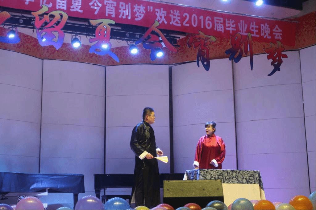 金忠杰副院长主持的抽奖环节,朗诵了四年前某位学姐对四年后的人生规划,意义十足,博得了尤其是毕业生的掌声。最后,晚会在歌曲《难忘今宵》平静优雅的旋律中宣告结束。