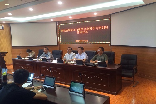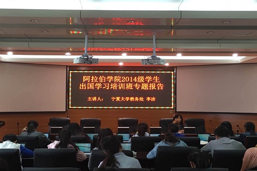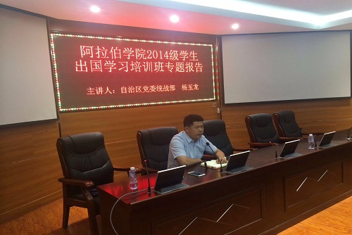举行了2014级学生出国学习培训班,期间邀请自治区安全厅、自治区党委统战部、自治区外办有关专家和领导,学校教务处、资助管理中心、教育学院和本院专家对出国学生分别进行了安全管理、民族宗教、涉外事务、教学管理、访学资助、心理适应、专业学习等多个方面的培训教育。