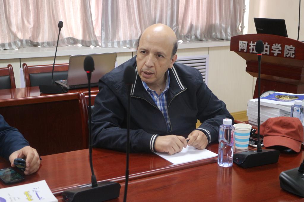 中国阿拉伯国家研究院与代表团举行学术交流座谈会。双方学者就感兴趣的话题做了深入交流。学院及研究院常务副院长金忠杰教授表示,为了响应习近平总书记提出的“一带一路”倡议,魔性论坛