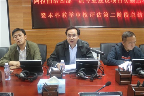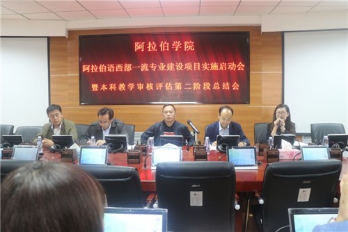 在学院报告厅召开阿拉伯语西部一流专业建设项目实施启动会暨本科教学审核评估第二阶段总结会。校教务处副处长任磊老师,学院党总支书记张前进老师,学院常务副院长金忠杰老师,学院党总支副书记王彦仓老师,学院学生工作办公室主任马生忠老师及学院全体教师出席本次会议,会议由学院副院长白楠老师主持。