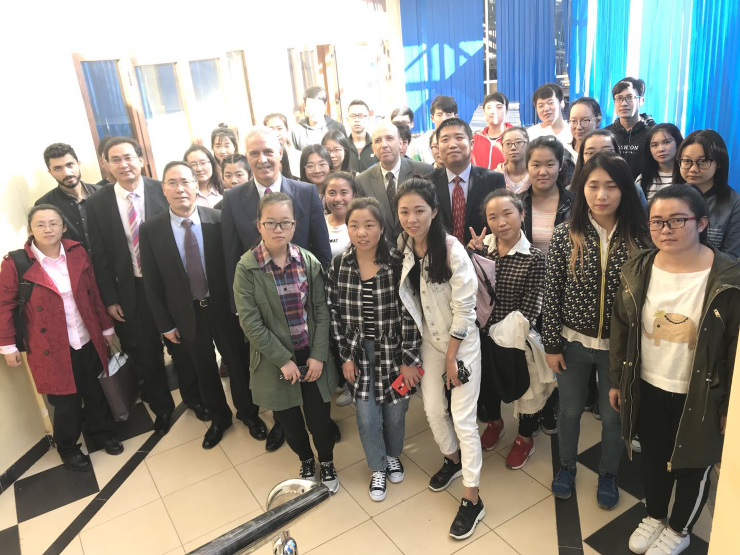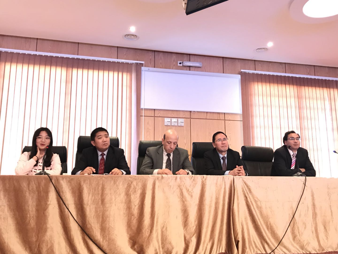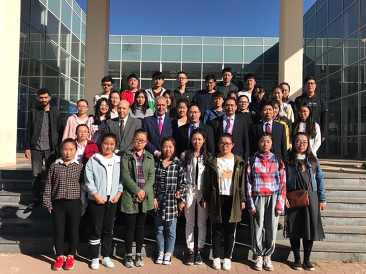 常务副院长金忠杰、党总支副书记赵永军、中国阿拉伯国家研究院王卓老师出席了会议。哈桑一世大学法赫里副校长、学生事务科艾敏老师陪同参加。