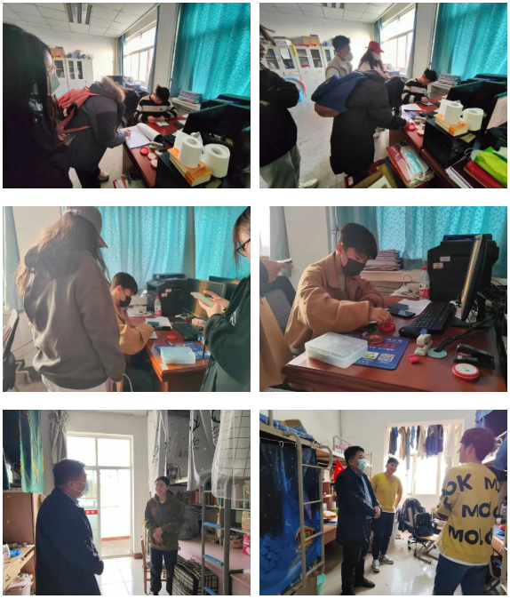 为做好学生报到工作,各学生骨干也积极参与工作,到学院进行卫生清扫,认真细致做好报到登记工作,保证了返校工作的正常进行。学院领导、辅导员到宿舍看望同学们,与学生亲切交谈。
