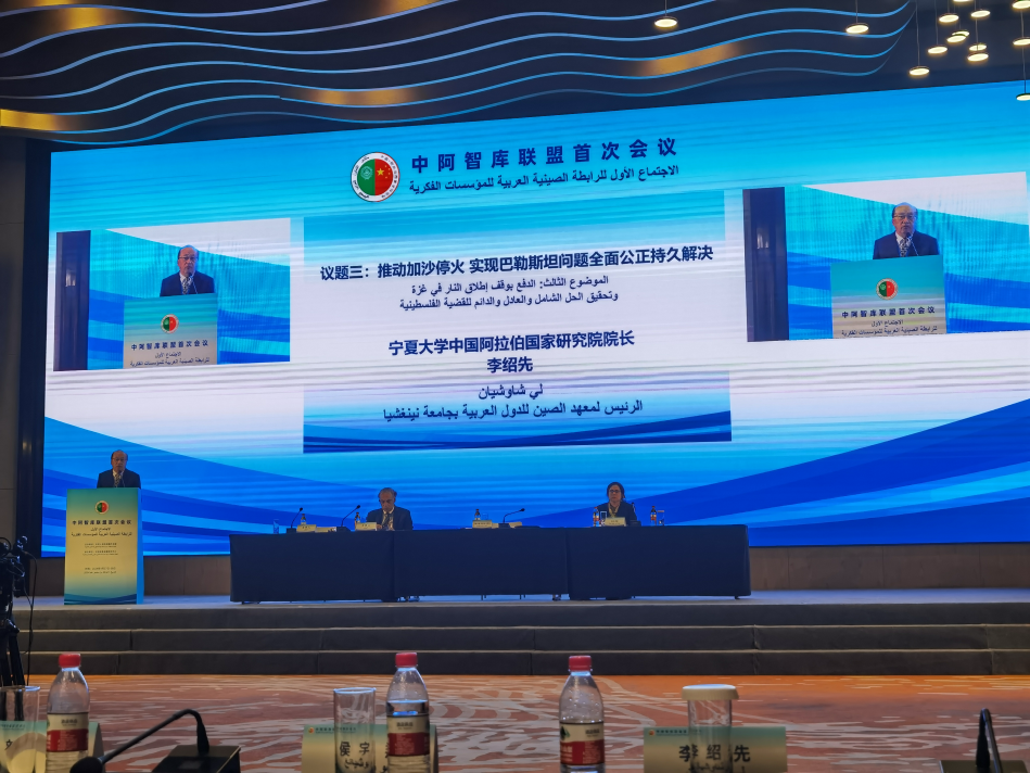 院长、中国中东学会顾问、教育部国别与区域研究专家委员会委员李绍先受邀参加会议,并就第三议题:推动加沙停火,实现巴勒斯坦问题全面公正持久解决作了主旨发言。