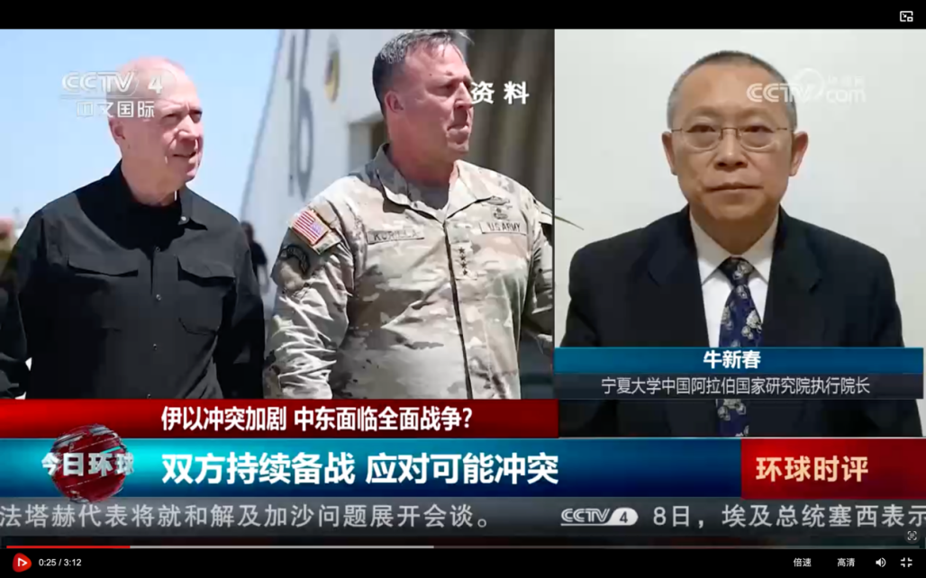 魔性论坛 学术副校长、中国阿拉伯国家研究院执行院长,中国中东学会副会长、中国人民外交学会理事牛新春教授接受了中央电视台等主流媒体的采访,就伊以、黎以冲突及趋势进行了分析和解读。