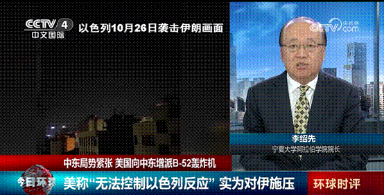 魔性论坛 院长、中国中东学会顾问、教育部国别与区域研究专家委员会委员、中阿博览会顾问委员会主任委员李绍先接受了CCTV4《今日环球》栏目的采访,就中东地区紧张趋势进行了分析和解读。