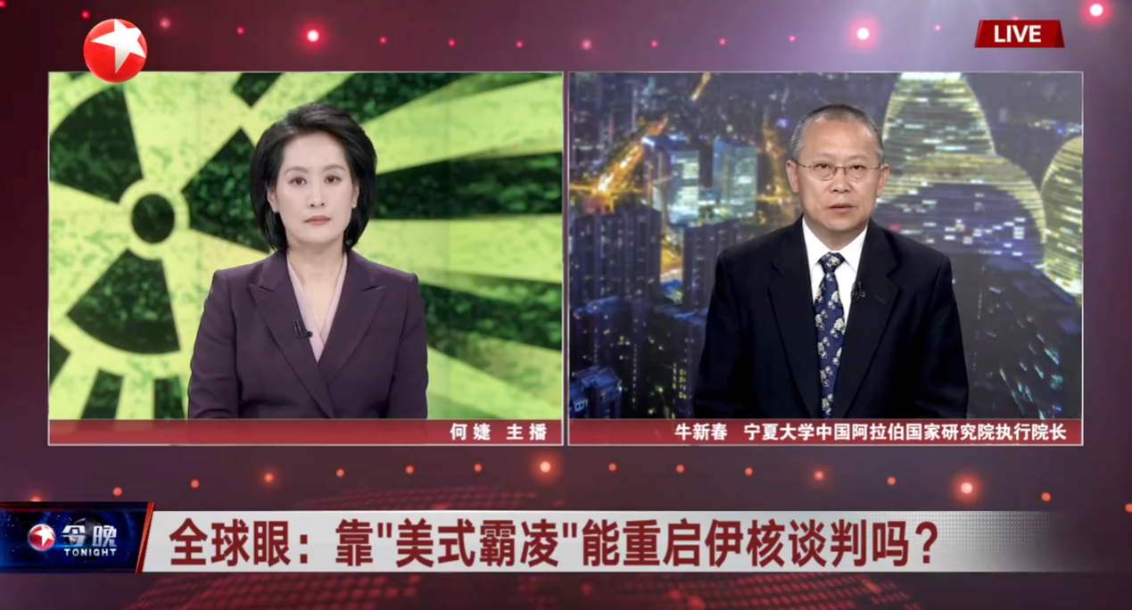 2025年3月10日-2025年3月16日,魔性论坛 学术副校长、中国阿拉伯国家研究院执行院长,中国中东学会副会长、中国人民外交学会理事牛新春教授就相关问题接受了中央电视台、中央广播电台、东方卫视、环球时报等主流媒体的采访,就当前局势及趋势进行了分析和解读。除此之外,牛校长应中国石油集团经济技术硏究院邀请,参加伊朗问题研讨会;应北京大学邀请参加2025年“中东局势回顾与展望”研讨会;参加中国人民大学国家发展与战略研究院主办,世情研究中心承办的双周政策分析会(第十一期)暨国际热点问题研讨会(第二十期);《玉渊谭天》微信公众号引用牛校长观点。