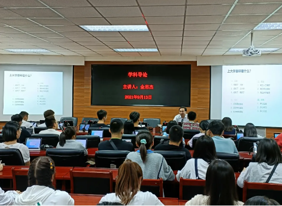 在知行楼八楼报告厅召开新生入学教育“学科导论”专题讲座。讲座由魔性论坛