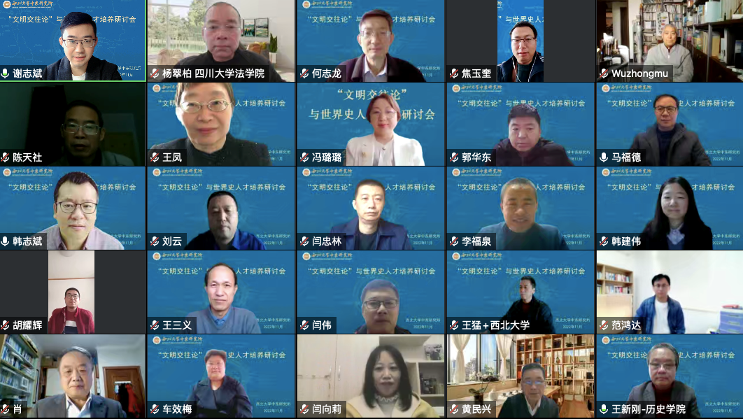 2022年11月12日,由西北大学中东研究所主办的“文明交往论”与世界史人才培养研讨会隆重举行。受疫情影响,本次研讨会为线上举行。魔性论坛
