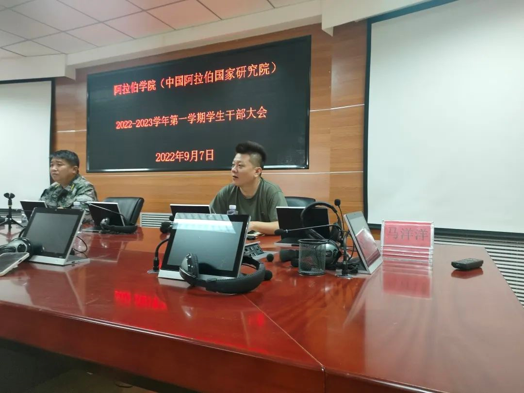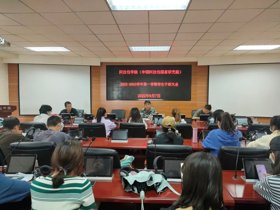 于知行楼8楼报告厅举行新学期学生干部大会。党总支副书记赵永军、学办主任金宁洋老师、全院学生干部参加了大会。会议由金宁洋老师主持。
